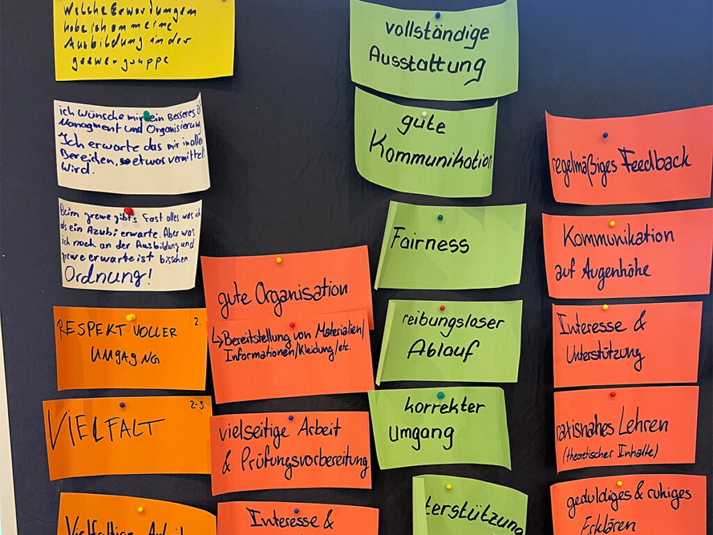 Mit den Azubis, vor allem in den ersten Wochen und Monaten, in einem engen Austausch zu stehen, hat sich bewährt. Das Äußern von Erwartungen und die Rückmeldungen dazu haben einen direkten Einfluss auf die Ausbildung. Diese drei Veranstaltungen, die wir nun zum dritten Mal in Folge durchgeführt haben, tragen dazu bei:
