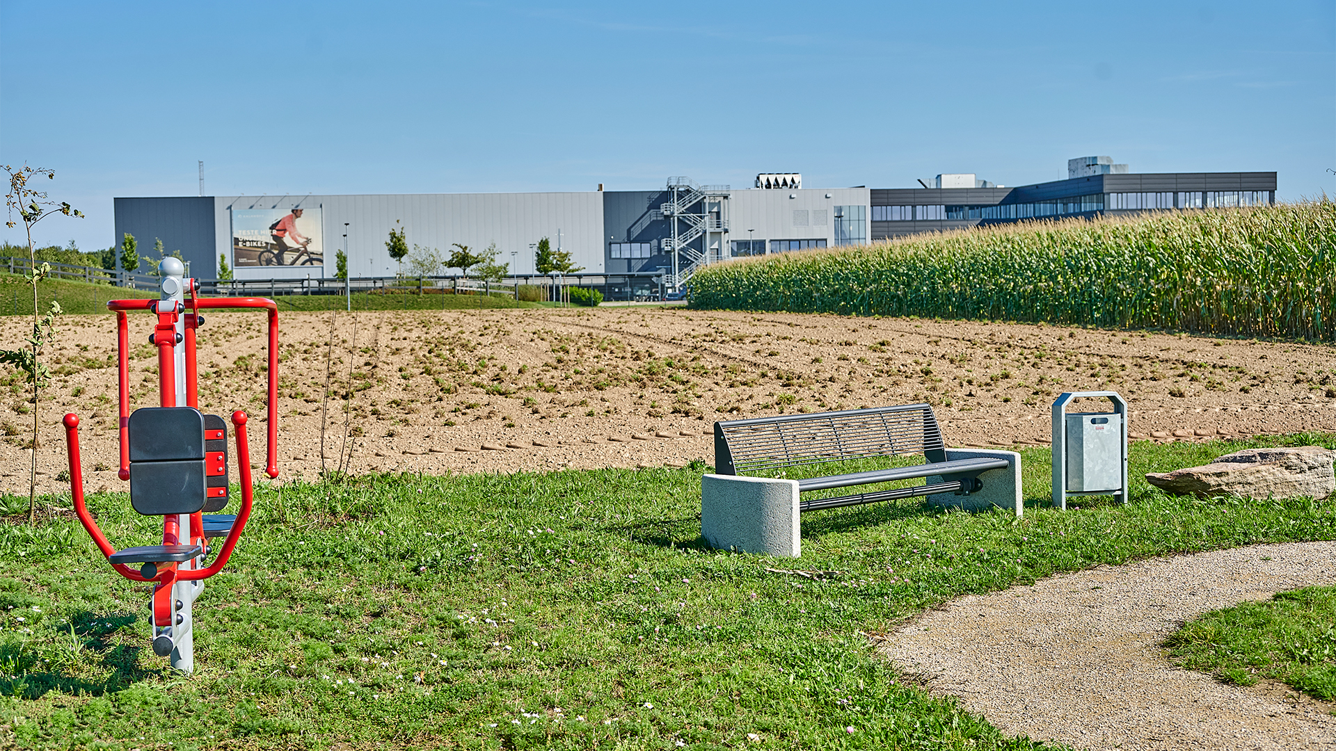 Der Bau eines rundlaufenden Weges aus wassergebundener Wegedecke sowie die Pflanzung von Sträuchern und Bäumen, die Modellierung eines Sickergrabens und der Einbau von Bewegungsgeräten gehörte bei diesem Projekt zum Auftrag, den unser damaliger Standort in Osnabrück ausführte.