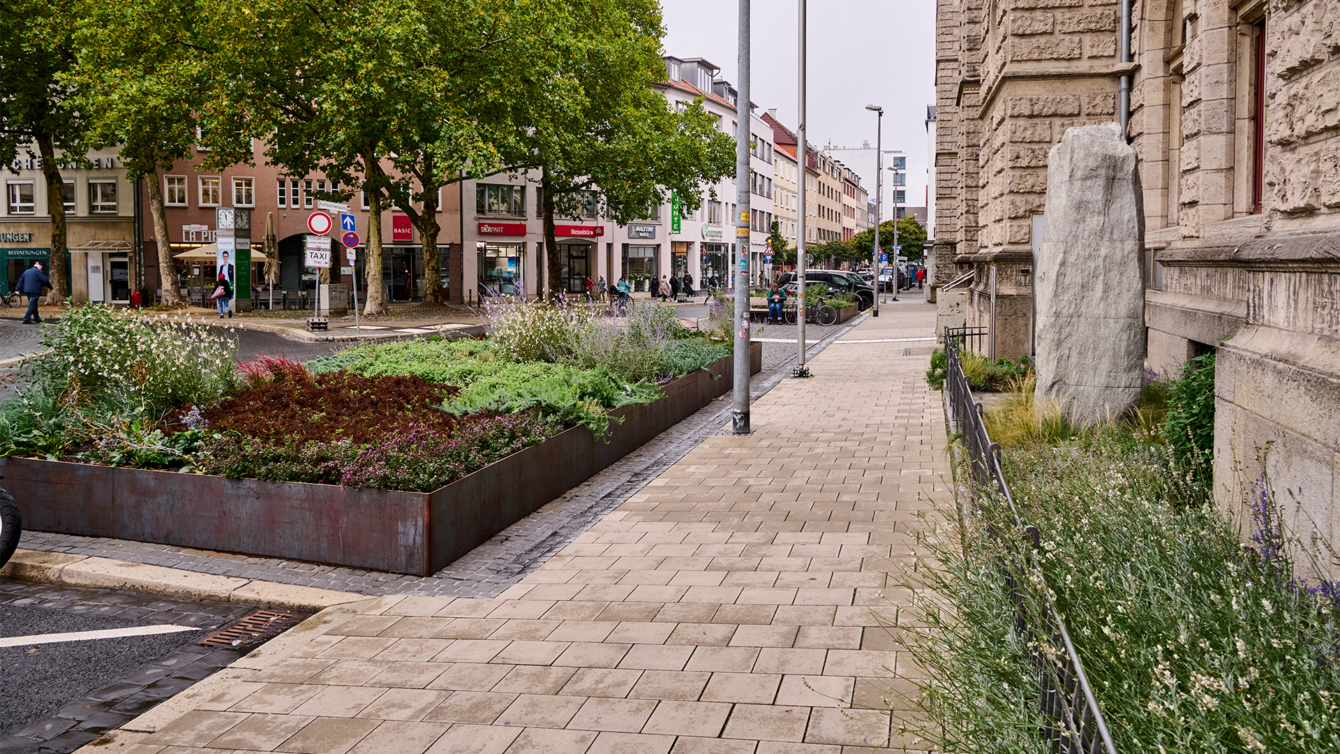 Grewe Braunschweig wurde mit dem Bau von Cortenstahl-Hochbeeten auf dem neu geschaffenen Fritz-Bauer-Platz in der Braunschweiger Innenstadt beauftragt. Ebenso gehörte die Bepflanzung der Beete mit Stauden dazu.