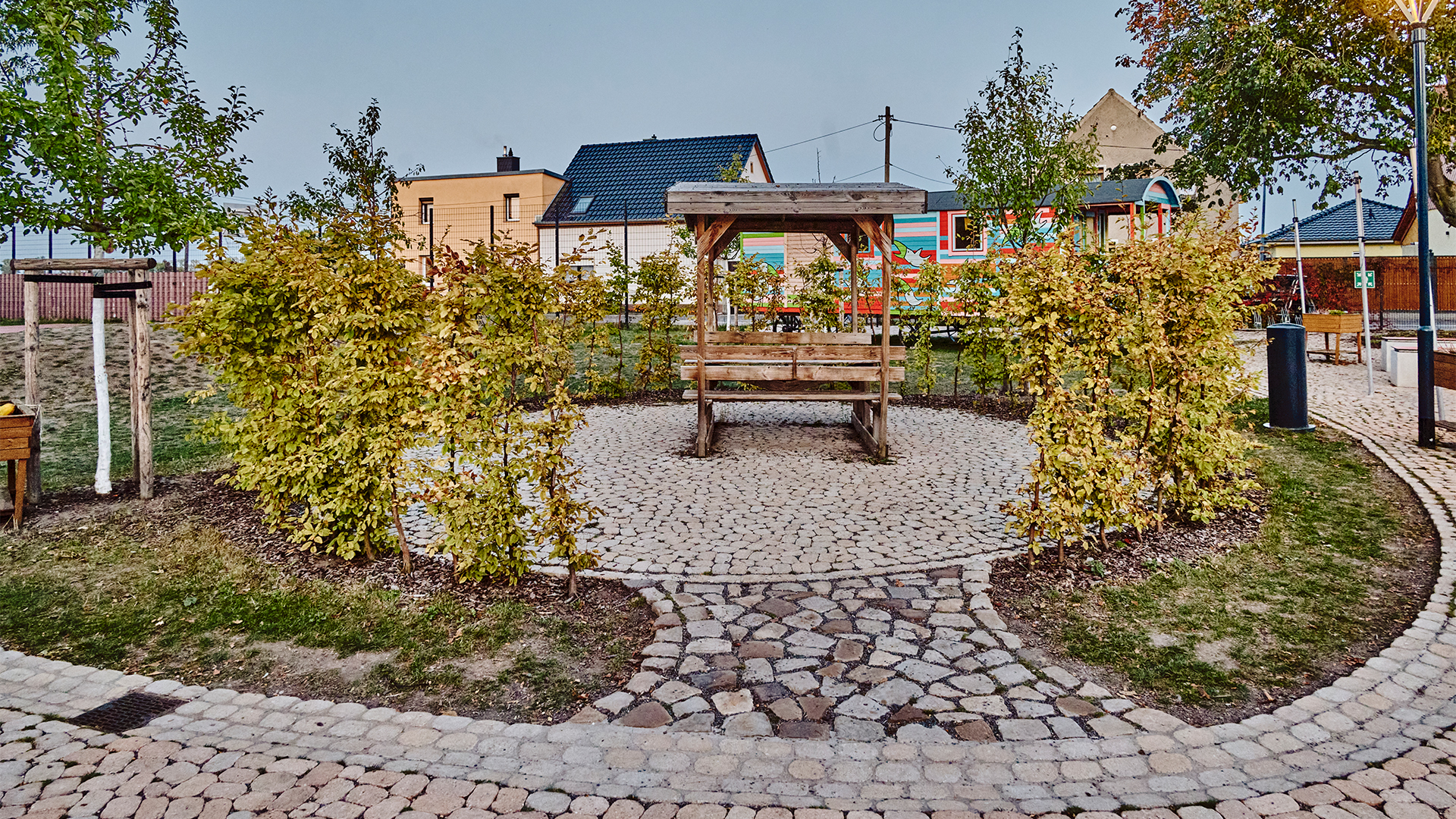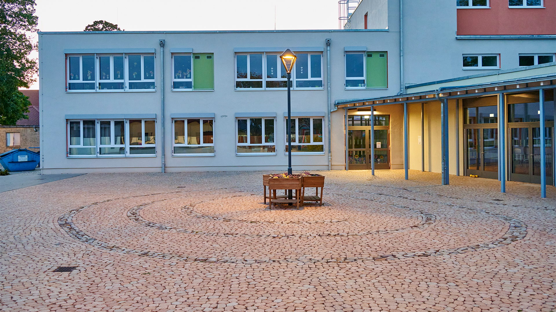 Im Zuge der Sanierung der Grundschule Altenweddingen hat unser Team von Grewe Magdeburg den Bau der Außenanlagen ausgeführt. Eine neue großzügige Platzfläche empfängt die Schülerinnen und Schüler. Neben dem Wegebau gehörte auch der Bau eines „grünen Klassenzimmers“ sowie die Errichtung eines multifunktionalen Spielfeldes zu den Aufgaben. Ausstattung des Geländes mit Bänken etc. sowie die Bepflanzung runden die Arbeiten ab.